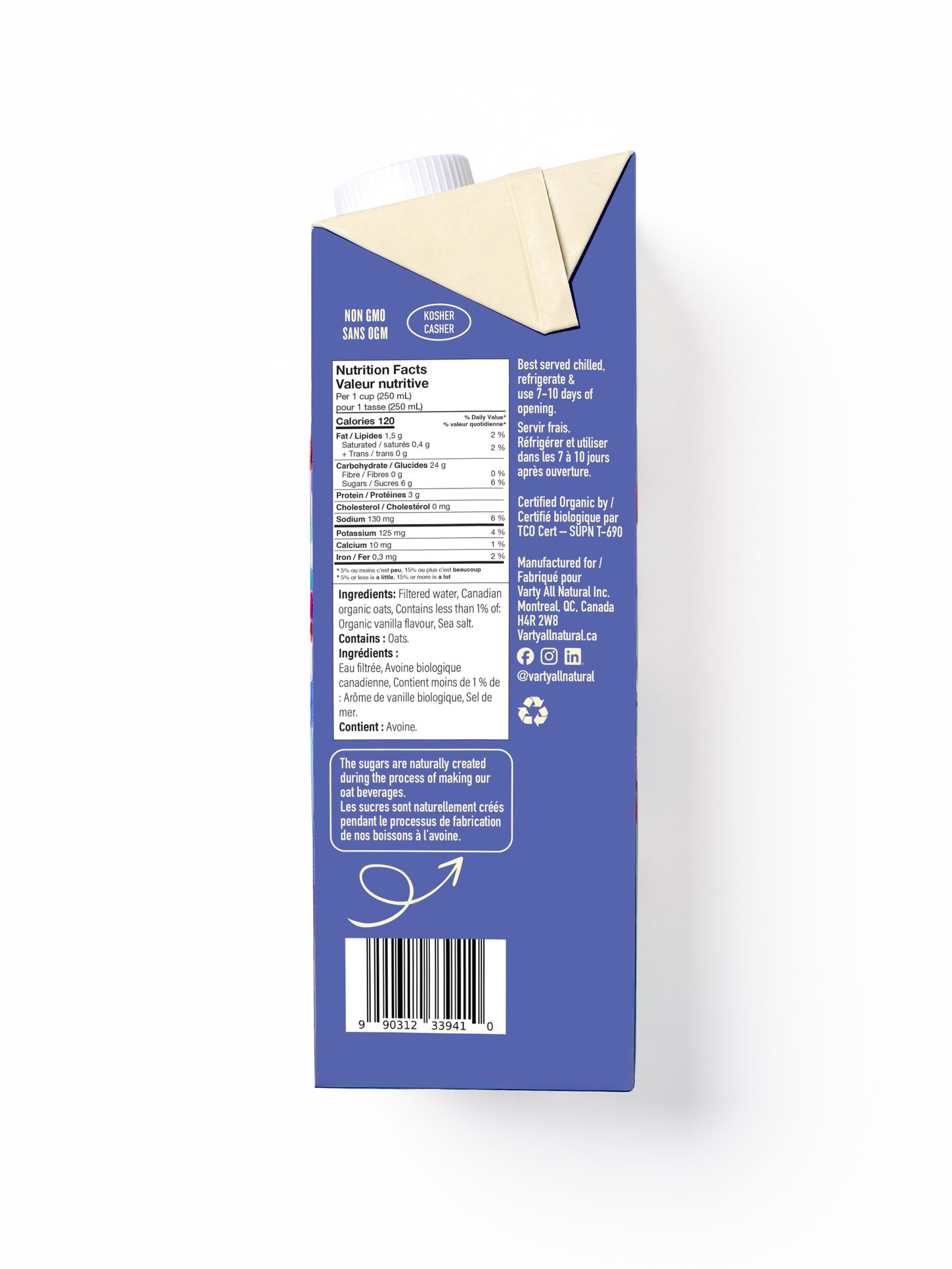 You don’t need sugar (you’re sweet enough) but a little vanilla goes a long way. Savour the natural flavours of our vanilla-flavoured oat beverage, made with just 4 simple ingredients for a smooth, creamy, and subtly-sweet profile.